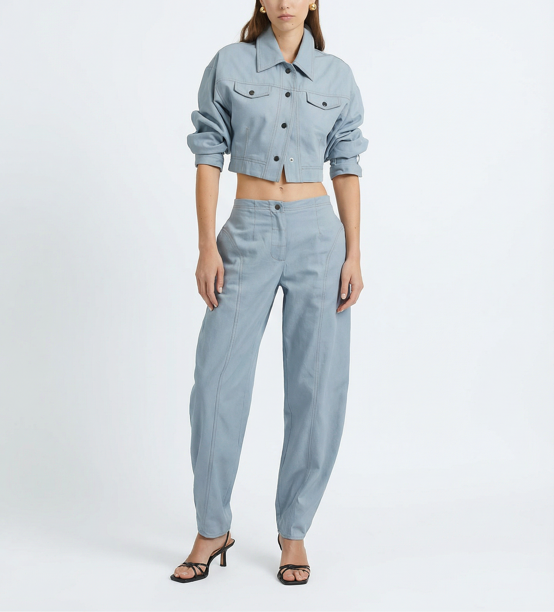 Mid-rise, barrel-leg silhouette